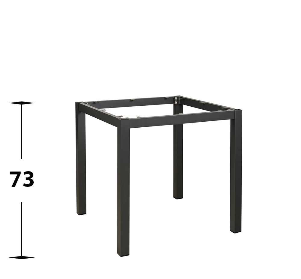 Aluminium-Tischgestell in Anthrazit für Tischplatten mit einer Größe von 80 x 80 cm.Gesamthöhe: ca. 73 cmDie abgebildete Tischplatte ist nicht im Kaufpreis erhalten.Passende Tischplatten finden Sie hier: Outdoor TischplattenIdeal für den Außenbere...